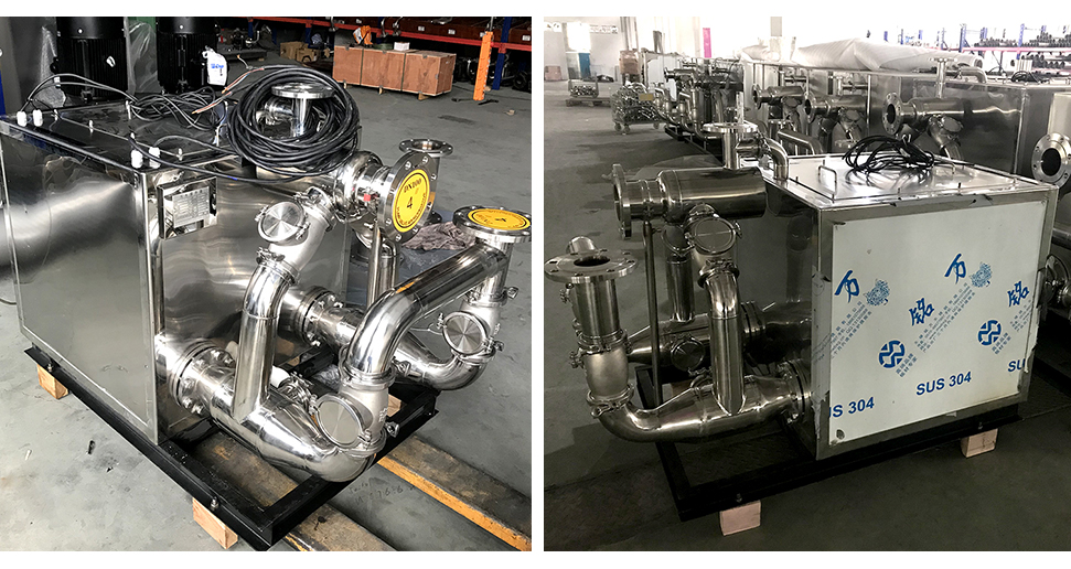 4、分體式雜物分離裝置:分體式雜物分離實現(xiàn)了雜物和污水的分離,雜物通過進水管路進入雜物分離裝置,并暫存在雜物分離器中,污水正常流入密閉式箱體,雜物不接觸排污 泵葉輪,排污泵工作排水時,通過排水管路,利用排污泵的排水水壓,帶走雜物分離器中暫存的雜物,提升排放到市政管網(wǎng)。徹底杜絕了用絞刀泵解決堵塞,但會纏繞泵、卡 泵的停機情況發(fā)生;